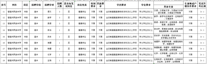 (具体详见云南省教育厅官网、楚雄州教育体育局官网)招聘岗位