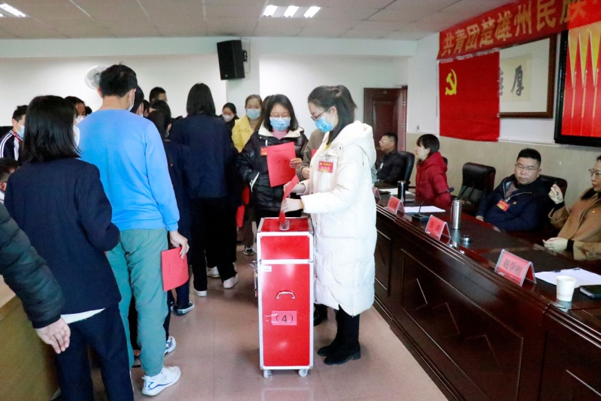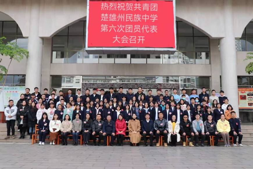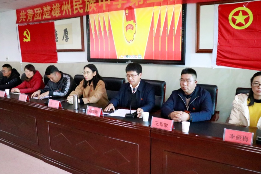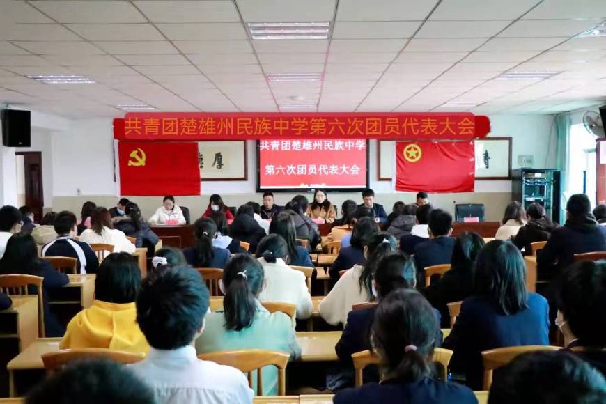 2021年12月25日下午,共青团楚雄州民族中学第六次团员代表大会在学校教职工会议室召开,学校党总支书记、校长张萍,党总支副书记赵学刚,党总支委员、德育处主任、团委书记王智敏,党总支委员、总务处主任罗东梅,以及101名教师和学生代表参加会议,会议由团委副书记郭金秀主持,大会选举产生了学校新一届团委委员会。