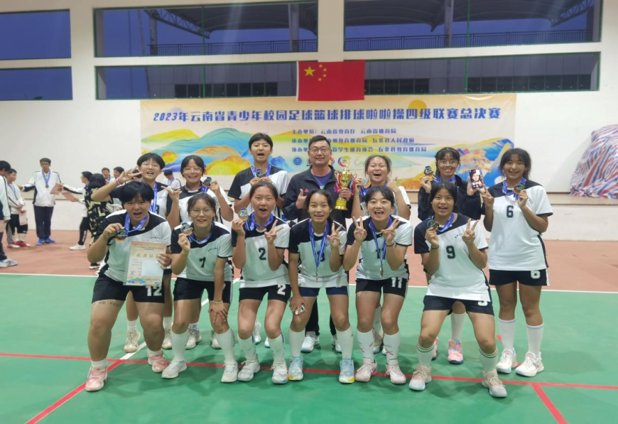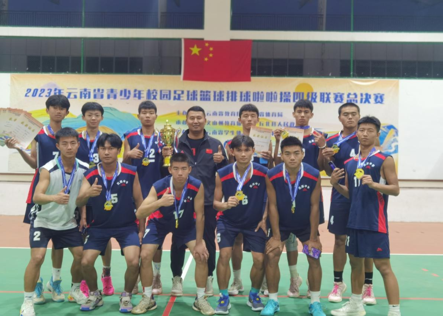 2023年10月22日——29日,由云南省教育厅、云南省体育局主办,文山州教育体育局承办的2023年云南省青少年校园排球四级联赛(高中组)总决赛如期在文山州丘北县举行。经过一周的激烈角逐,我校排球健儿不畏强敌、敢打敢拼,夺得高中男子组冠军、高中女子组季军。男子排球队实现“三连冠”,女子排球队连续两届打进前三,打出了我校排球队应有的水平和风采。