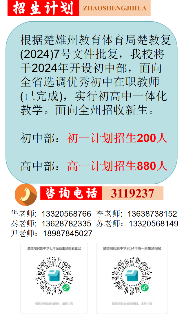 楚雄州民族中学2024年招生简章