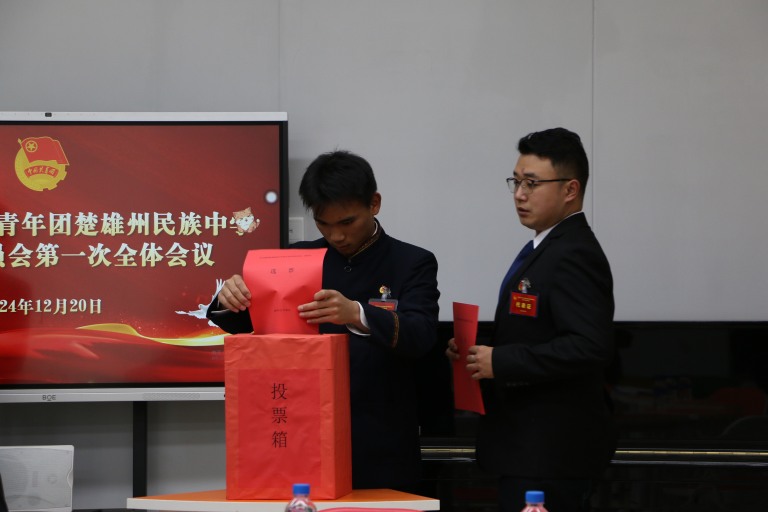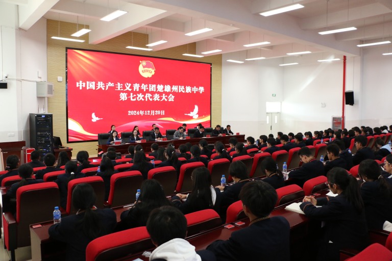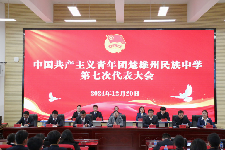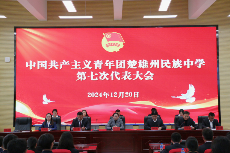 2024年12月20日下午,共青团楚雄州民族中学召开第七次团员代表大会,选举产生新一届校团委委员。楚雄州民族中学党总支书记、校长张萍同志出席会议并讲话,学校党总支副书记、工会主席赵学刚同志出席会议,本次会议由党总支委员、办公室副主任李太斌主持,103名团员代表参加大会。