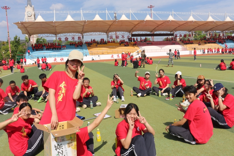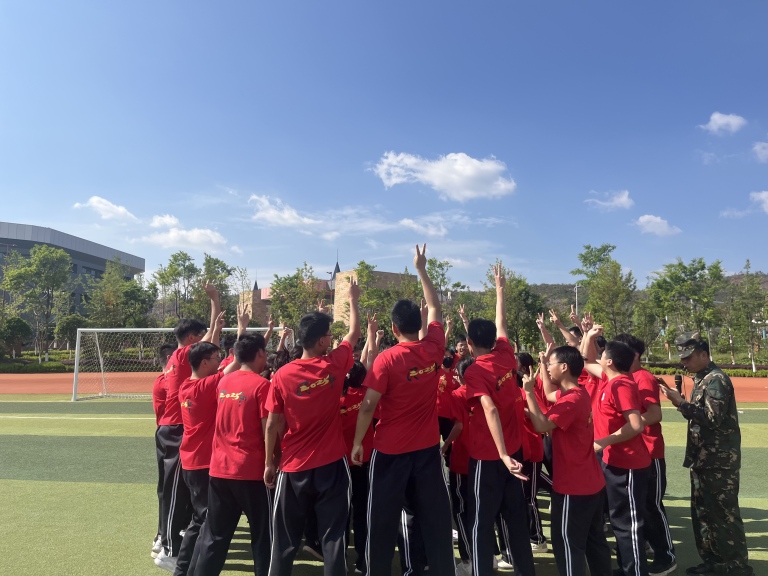 “我们是最棒的班级!耶!”整齐的呐喊声响彻操场。在“我们是最棒的班级”互动中,用手轻轻拍在旁边同学的后背上,用节奏传递信心:“1,我;1、2,我们;1、2、3我们是……”越来越快的击掌声如心跳共振,喊到最后时,每个人眼中都闪烁着光芒。声浪此起彼伏,震落枝头的树叶,也震碎了连日来的焦虑。这是属于青春的宣言:无论前路多难,我们都是彼此最坚实的后盾!