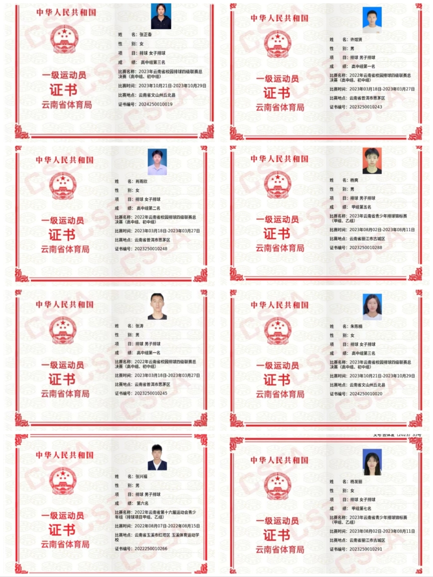 我校体育项目进校园学生得到良好的发展,近八年来,我校排球队不断提高,为各大高校输送了大量优质生源,其中包括云南大学、内蒙古大学、昆明理工大学、云南师范大学、云南民族大学、上海师范大学、山西师范大学、贵州师范大学、西北民族大学、集美大学等。