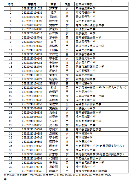 据我校与浙江省新华爱心教育基金会签订的《2025年“捡回珍珠计划”珍珠班合作协议》,以及《浙江省新华爱心教育基金会“捡回珍珠计划”珍珠班施行细则》文件的要求,经由家长或学生个人申请,教务处和高一年级组实地走访,严格筛选,楚雄州民族中学党委会决定,拟推荐40位同学入选楚雄州民族中学2025级珍珠班,现将拟选名单予以公示,具体见附件。