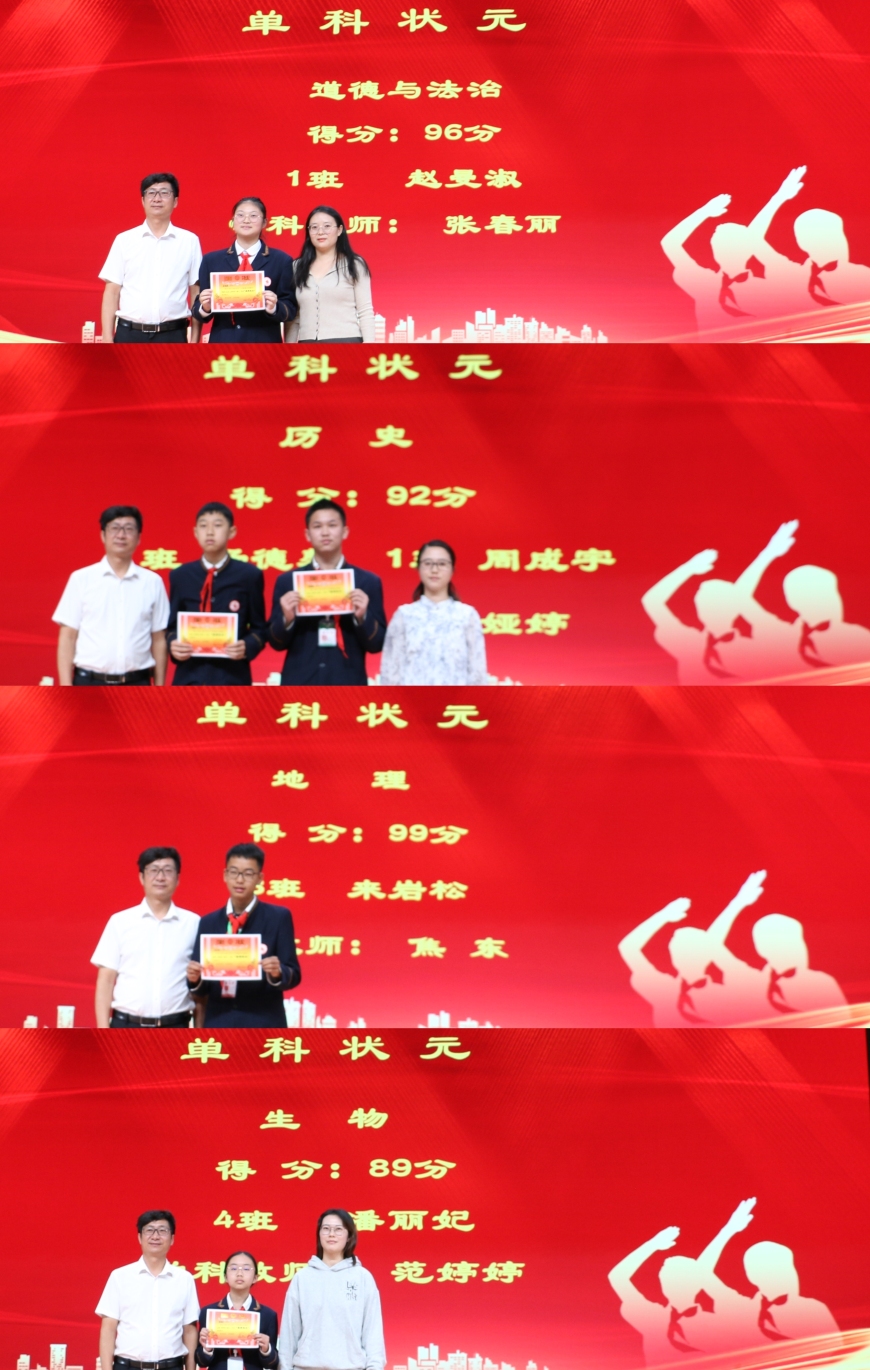 刘明知校长为表彰大会致辞。刘校长对初中部在上学期期末统测中取得总平均分全州第二的优秀成绩表示祝贺,对全体教师的辛勤付出表示感谢,并鼓励同学们明确目标,用实际行动靠近梦想,能够做到懂文明、讲礼貌,多锻炼、强体魄,在校园里茁壮成长。希望同学们能够勤学善思,逐渐培养良好的学习习惯,在方方面面严格要求自己,团结同学、不断进步,增强安全意识,让优秀成为一种习惯。