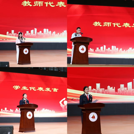周丽琴老师以“三束光”为喻,分享了来自默默耕耘的教育前辈、一起前行的同事以及纯真可爱的同学的温暖与力量。朱淼老师幽默风趣的语言让现场教师和学生都意识到了自己的责任与担当。他们分享了教学心得和对学生的期望,体现了教师们对教育事业的热情和对学生的关爱。