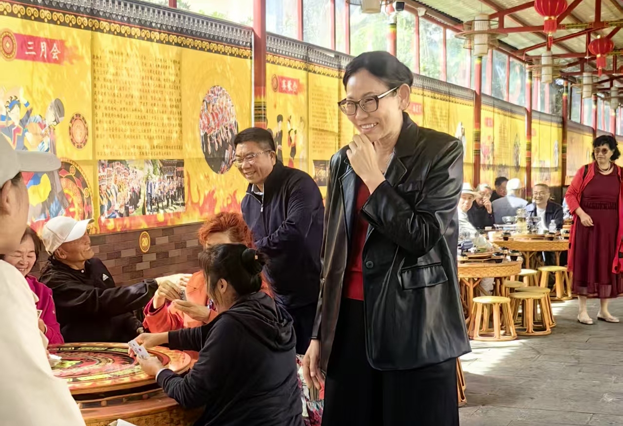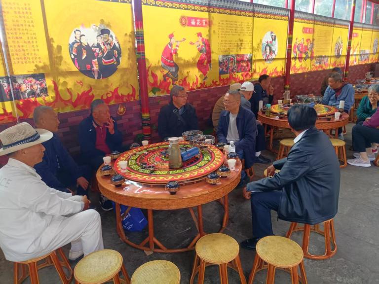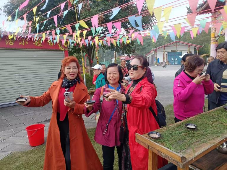 清晨的彝村笼罩在薄雾中,退休老师们走进风景如画的紫溪彝村,在山水田园间感受自然之美,在非遗村寨里触摸文化之魂。过山号,拦门酒,彝家以一场热情独特的欢迎仪式为老教师们送上别具温情的节日祝福。老师们漫步山水间,时而驻足拍摄山间云海,时而与身着传统服饰的彝族村人亲切交谈。教职工们围坐在彝家小院,品着清香的苦荞茶,分享着从教生涯的难忘故事。他们彼此牵挂,相互祝福,谈论着共同走过的教育历程与芳华岁月。