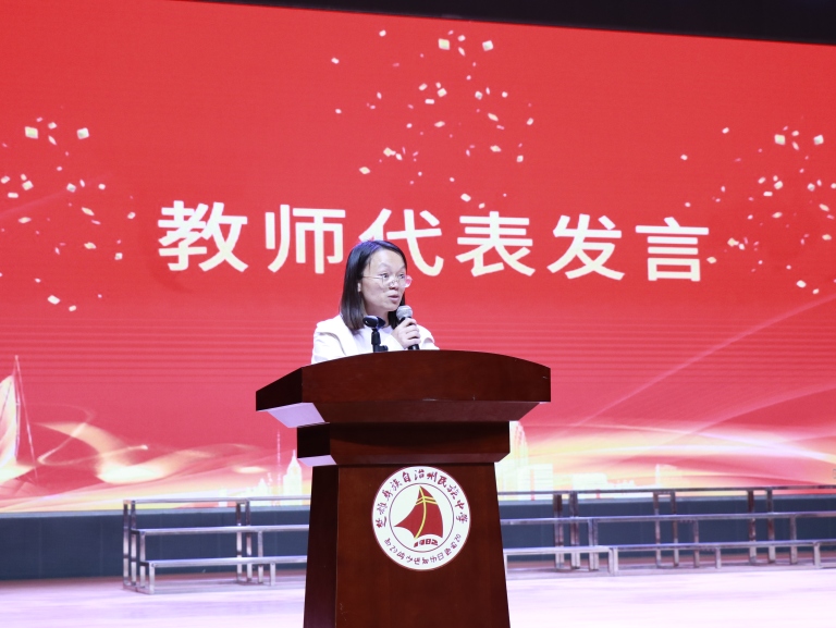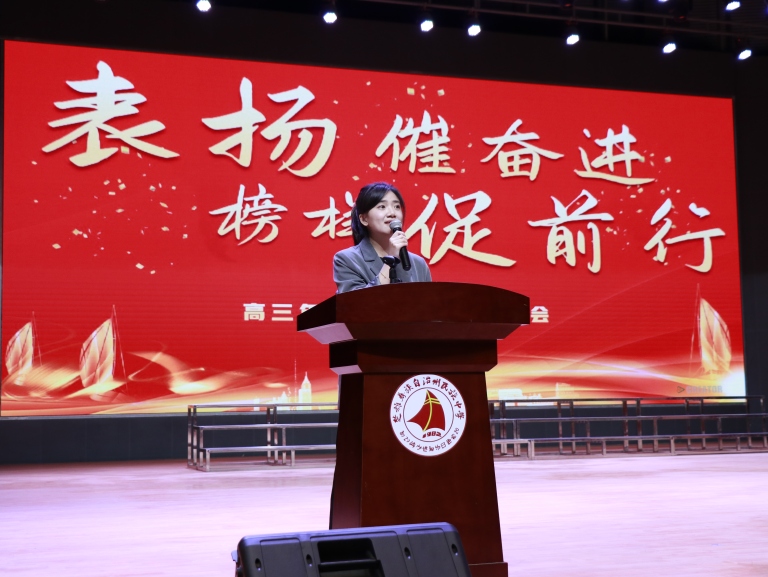 郭金秀老师代表全体高三老师发言总结:肯定了学子们的拼搏付出,明确教师将以陪伴者和引路人的身份与学子并肩作战,鼓励学子以坚韧心态面对挑战、夯实知识基础并注重劳逸结合,同时寄托了学子们不负韶华、在高考中绽放光芒的美好期许。