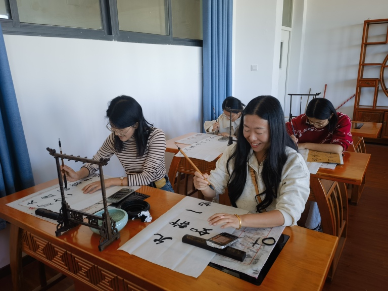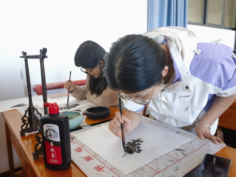 一时间,校园各处洋溢着热情与活力。舞蹈教室内,韵律操组的老师们随乐而动,身姿飒爽;一墙之隔的乒乓球室内击球声清脆悦耳,战况正酣。与此同时,排球场上呐喊声、欢笑声此起彼伏,团队情谊在一次次默契配合中升温。书画教室里墨韵飘香,笔走丹青;音乐教室中歌声悠扬,情感流淌。茶艺室静谧雅致,茶香袅袅,老师们在温杯烫盏间沉淀心灵。