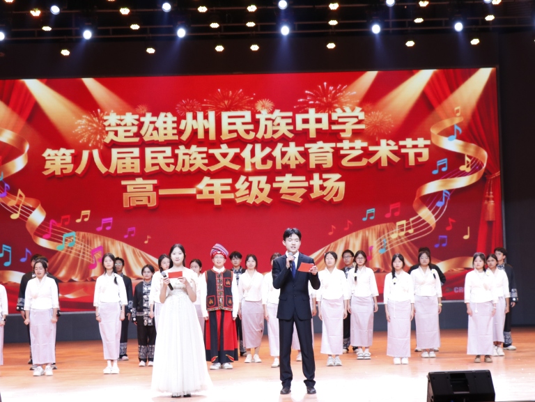 2025年11月25日晚,楚雄州民族中学第八届民族文化体育艺术节文艺表演比赛(高一年级)专场在学校礼堂火热举行,高一全体师生欢聚一堂,共享这场艺术盛宴。