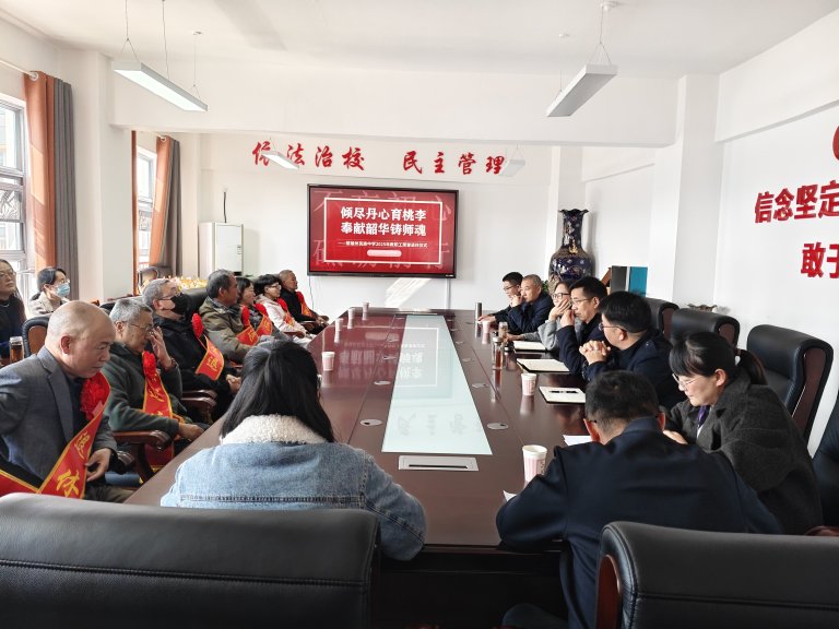 杏坛情深,岁月如歌。2025年11月25日下午,我校会议室暖意融融,一场以“倾尽丹心育桃李,奉献韶华铸师魂”为主题的荣退仪式在此温情举行。校领导班子、各教研组代表、青年教师齐聚一堂,深情致敬史洪兵、杨晓琴、许发保、焦东、杨彬、孙毅、李建锷、马继等八位老师绵延数十年的教育坚守。