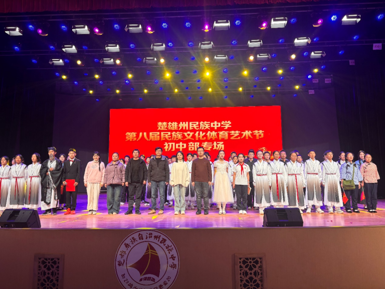 11月24日晚,楚雄州民族中学礼堂内华灯璀璨、掌声如潮,学校第八届民族文化体育艺术节文艺表演比赛(初中部)专场在此隆重举行。初中部全体师生齐聚一堂,共同沉浸于这场视听盛宴。