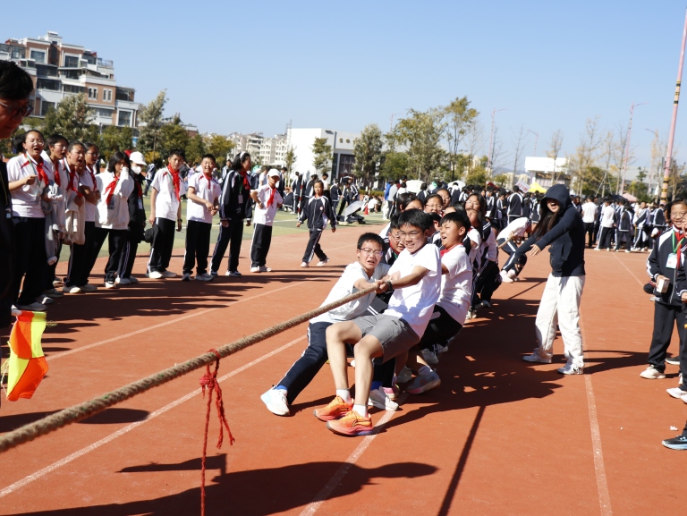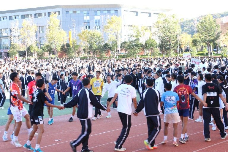 团体项目更是将现场氛围推向高潮。拔河比赛时,参赛同学们紧紧攥住长绳,场外呐喊声此起彼伏,响彻校园,充分展现了班级的凝聚力与向心力;千人打跳环节,身着各式民族服饰的师生们手牵着手围成同心圆,伴着欢快的旋律踏步起舞,欢声笑语中,各民族文化在此交融共生,青春的活力与热情在舞步中尽情释放。
