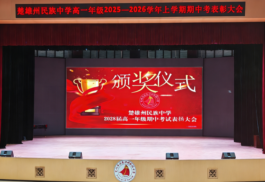 为全面总结期中考试阶段的教学与学习成果,树立先进典型,凝聚师生奋进力量,营造勤学善思、笃行实干的优良校园氛围,12月5日,楚雄州民族中学高一年级2025—2026学年上学期期中考试总结表扬大会在明德堂内隆重举行。高一年级全体师生齐聚一堂,共同见证荣耀绽放的瞬间,携手开启下一阶段的成长新征程。