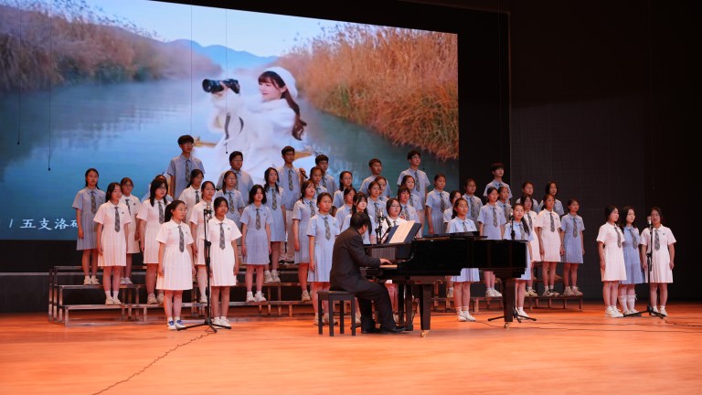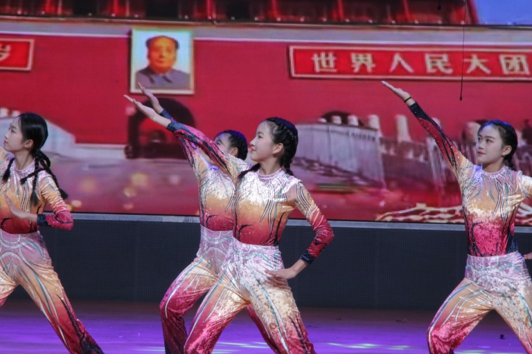 致辞落幕,文艺汇演精彩登场。12个精心打磨的节目依次亮相,用多元艺术形式展现民中学子的青春风采,彰显学校“五育并举”的文化育人特色。合唱队带来的《新年好,云南》,以嘹亮歌声传递云南大地的新年暖意,瞬间点燃现场氛围;初中部学子演绎的《同心共铸中国梦》民族健身操,将青春活力与家国情怀融入每一个动作,尽显少年担当;312班的朗诵《先辈的灯 我们的路》,以深情语调回溯先辈足迹,引导师生铭记来路、坚定前行;初中4班《月光下的凤尾竹》将葫芦丝的悠扬与独舞的柔美相融,勾勒出静谧诗意的傣乡画卷;320班师生合作的《金孔雀》合唱、275班师生演绎的《少女的祈祷》钢琴曲,用动人旋律与默契配合,展现师生间的温情与艺术魅力。