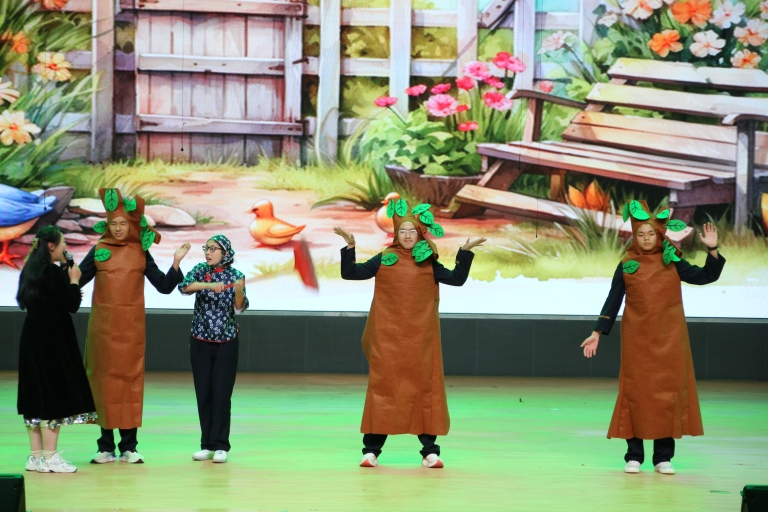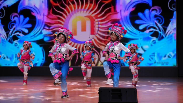 初中4班的情景剧《忆苏轼》,以生动演绎带观众穿越千年,感受东坡诗词的豪迈与深情;291班学子的独舞《光亮》,用灵动舞姿诠释冲破阻碍、追寻希望的勇气,打动在场每一位观众;321班带来的经典话剧《灰姑娘》,凭借鲜活的角色与奇幻的剧情,带领师生走进浪漫的童话世界;教师团队表演的《茶韵幽香,书画同筵》,将茶道的雅致、书法的风骨与绘画的意境搬上舞台,尽显中华传统文化之美。晚会在初中1班《彝家人民感党恩》、初中8班《歌歇咧》两支彝族舞蹈中落下帷幕,欢快的旋律、热情的舞姿,传递出民族团结的喜悦与对美好生活的向往。