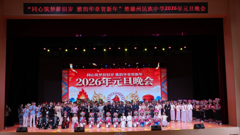 华彩落幕,情谊长存。此次元旦晚会不仅是一场视听交融的文艺盛宴,更是楚雄州民族中学2025年育人成果的生动缩影。新的一年,学校将始终坚守“为党育人、为国育才”的初心使命,在党建品牌创建、初高中一体化衔接、优生培养体系构建等领域持续深耕,以实干担当为推进中国式现代化建设、推动楚雄州教育高质量发展贡献民中力量。