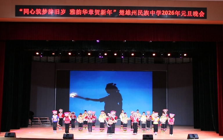 冬至阳生,岁回律转。12月29日下午16:20,楚雄州民族中学明德堂内灯光璀璨、暖意融融,“同心筑梦辞旧岁 雅韵华章贺新年”2026年元旦文艺晚会在此温情启幕。学校全体教职工及高三年级学子齐聚一堂,共庆佳节、回望过往、展望新程。