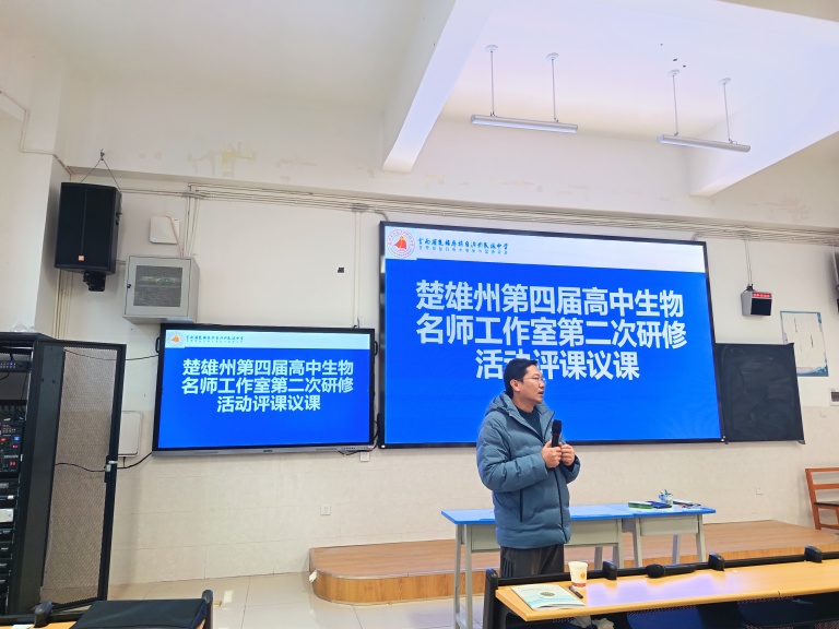 冬日研思浓,聚力共成长。为充分发挥名师工作室的示范引领作用,提升教师专业素养与教学实践能力,楚雄州第四届普通高中生物学名师工作室第二次集中研修活动于12月28日上午在楚雄州民族中学顺利开班,楚雄州民族中学党委书记张萍、副校长王智敏、州教科所生物学教研员王思娟,以及工作室成员齐聚一堂参加了开班仪式,开班仪式由工作室主持人刘常周主持。