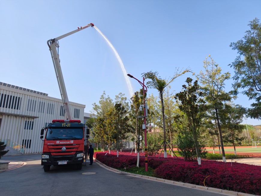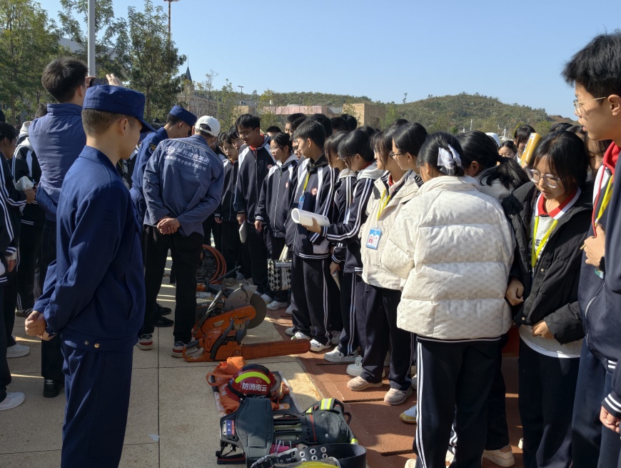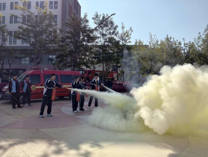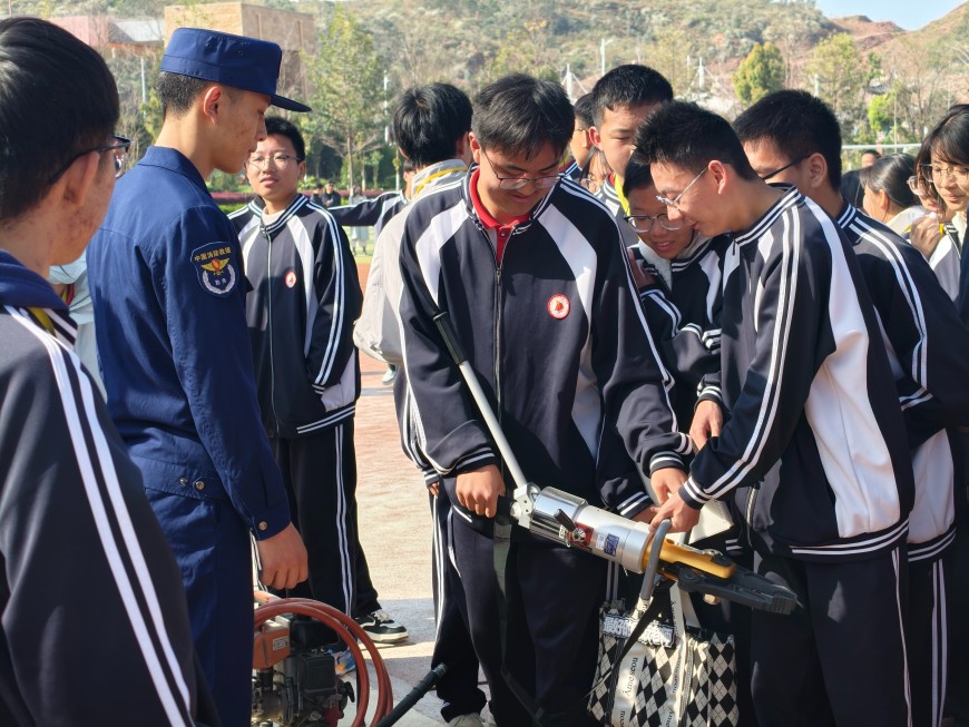 演练现场,楚雄市消防救援局的工作人员为师生们带来了专业的消防知识讲解与实操教学。工作人员结合校园火灾特点,详细讲解了干粉灭火器等常用灭火器械的适用场景、核心原理与规范操作步骤,拆解 “提、拔、握、压” 的操作口诀,让师生们清晰掌握灭火器械的使用方法。随后的实操体验环节,师生们踊跃参与,在消防人员的一对一指导下,亲手操作灭火器完成模拟火情扑救,沉浸式体验灭火全过程。同时,师生们还近距离参观、体验了各类专业消防工具,直观了解消防装备的功能与用途,把书本上的安全知识转化为实实在在的自救技能。