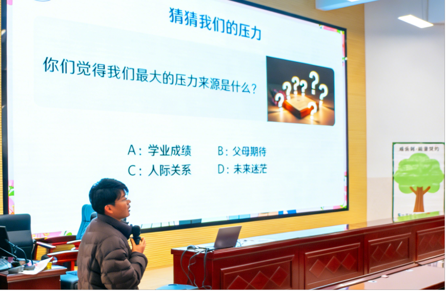 楚雄州民族中学刘海斌老师带来《与压力共舞,为心灵赋能——学生心理健康调适》主题班会示范课。课程以“看见压力—攻克压力—成长升华”为主线,环节设计层层递进、形式生动丰富。课堂上,刘老师借助“压力根源分析树”引导学生分组探究,深度剖析压力的外在表现、直接诱因与内在根源,鲜明传递“解压须抓根本”的教育理念。整堂课以学生为中心,重体验、强互动,为全体班主任开展心理健康教育、上好主题班会提供了可复制、可借鉴的优质范例。