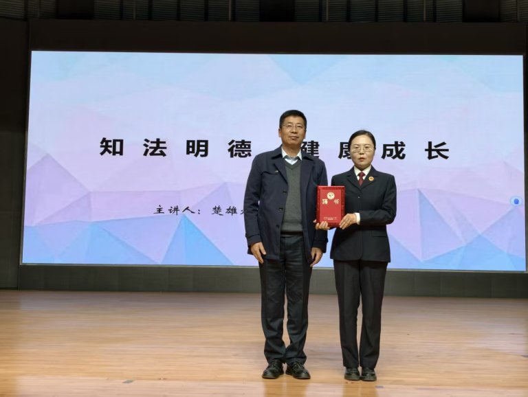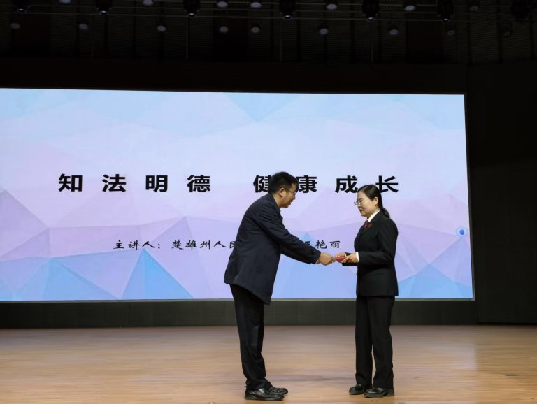 活动伊始,楚雄州民族中学校长刘明知同志,为王艳丽同志颁发法治副校长聘书。此次聘任是学校深化检校合作、完善校园法治教育体系的重要举措,为平安校园、法治校园建设提供司法支撑。